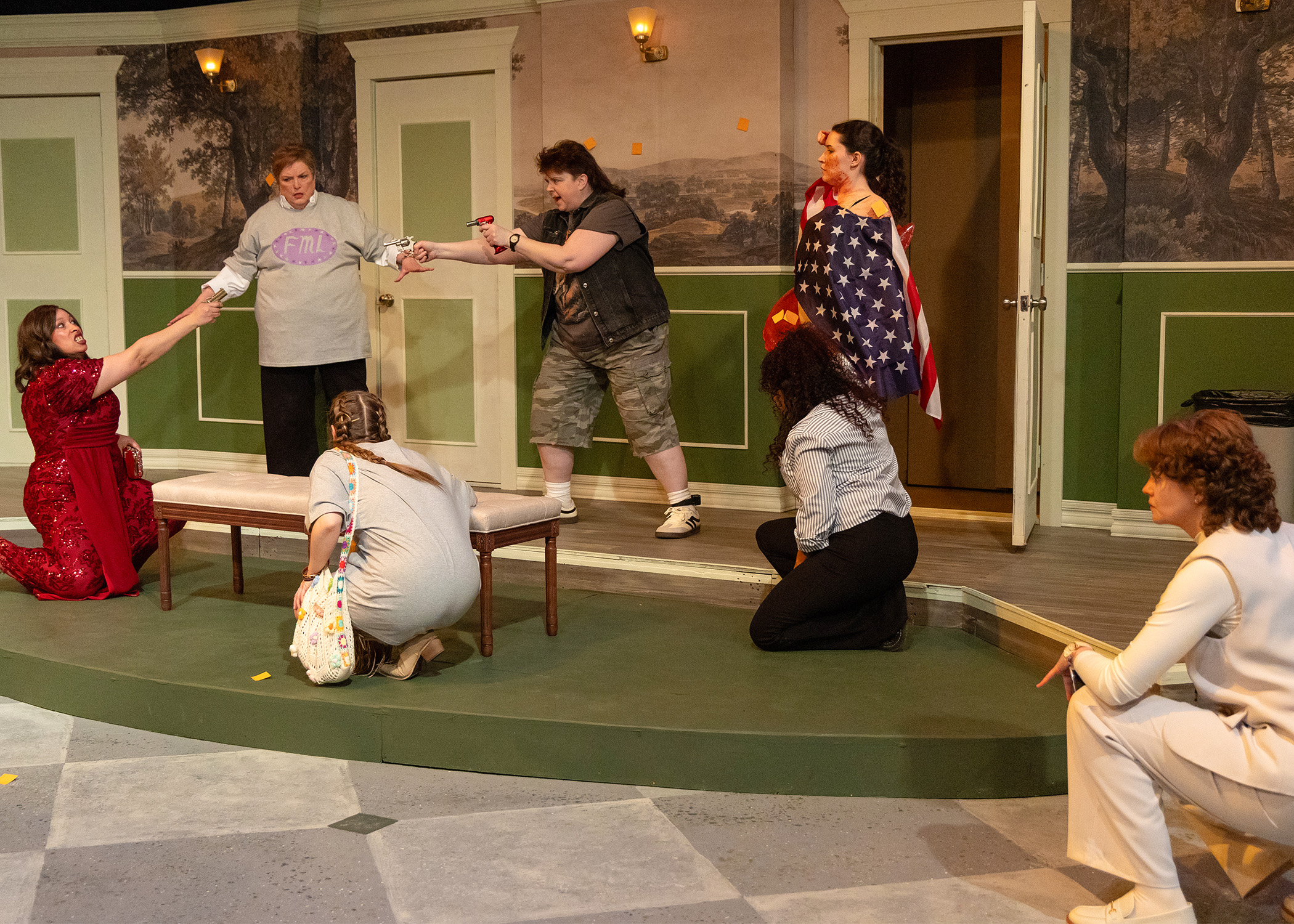 POTUS: or, Behind Every Great Dumbass Are Seven Women Trying to Keep Him Alive premiered on Broadway at the Shubert Theatre on April 27, 2022 and ran for a limited engagement until August 14, 2022. Directed by Susan Stroman (Oklahoma!, The Music Man, Crazy for You, Contact, The Producers, The Frogs, The Scottsboro Boys, Young Frankenstein, and more) the production featured Lilli Cooper, Lea DeLaria, Rachel Dratch, Julianne Hough, Suzy Nakamura, Julie White and Vanessa Williams.