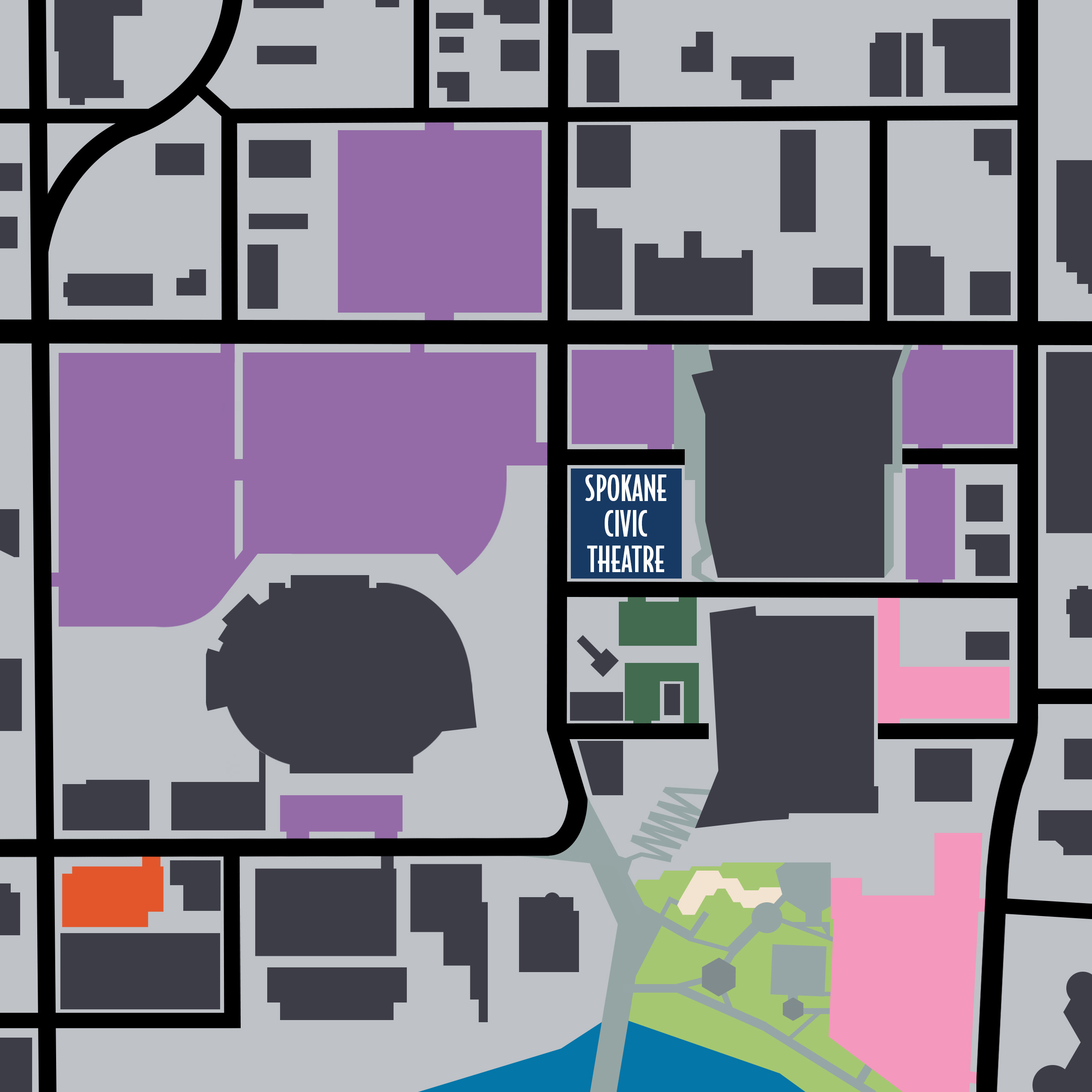 There are several paid parking lots available within walking distance to Spokane Civic Theatre. All parking lots require payment. Parking fees are patrons’ responsibility. Please follow the posted instructions to pay for lots without an attendant on site. Parking rates may vary per lot.
