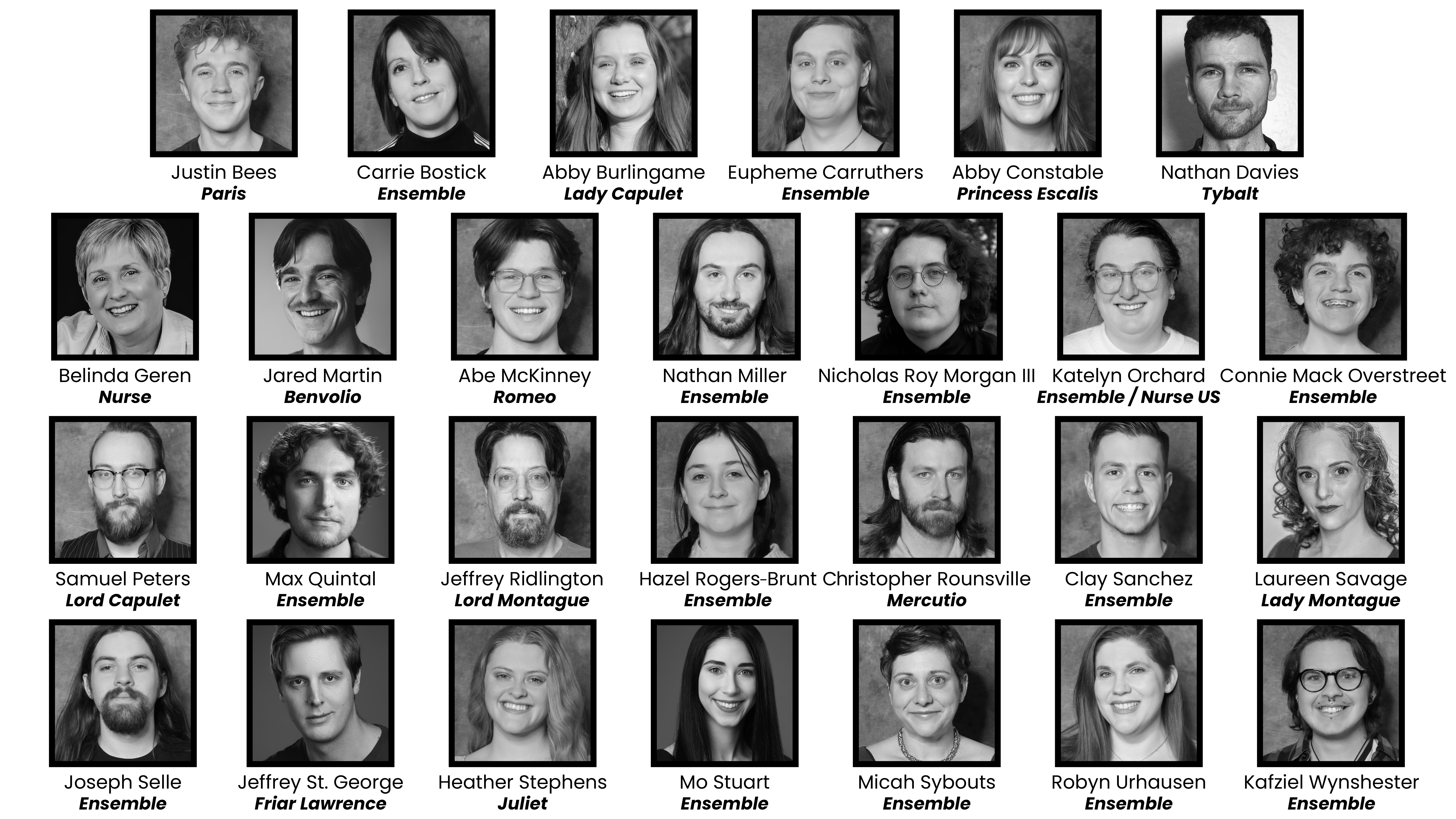 Christopher Rounsville (Mercutio) is a graduate of Eastern Washington University where he honed his craft and developed a deep appreciation for the arts. Following his academic journey, where he performed both on and backstage in numerous productions including several Shakespeare shows, he spent time with the Kingsman Shakespeare Company, further expanding his experience and passion for classical theater. Christopher is deeply grateful for the unwavering support of his friends and family, whose encouragement has been invaluable in every step of the artistic journey.